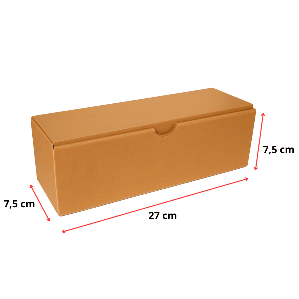 A Caixa de Papelão Kraft Auto-Montável 27 x 7,5 x 7,5 cm é resistente, prática e ideal para envios pelos Correios, transportadoras e e-commerce.
